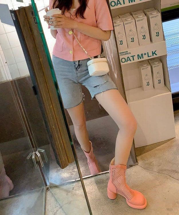 Beautiful Splicing Chunky Boots Pink Breathable Mesh Hollow Out