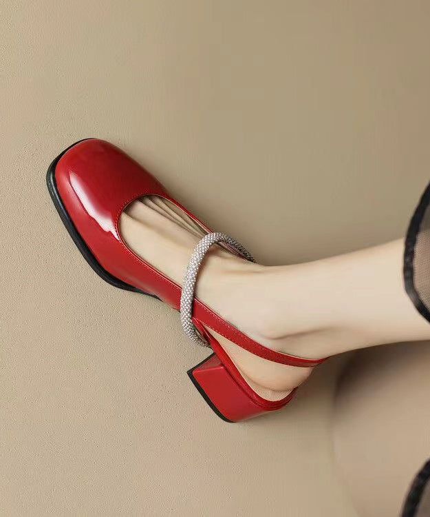 Beige Chunky Faux Leather Classy Splicing Zircon Sandals