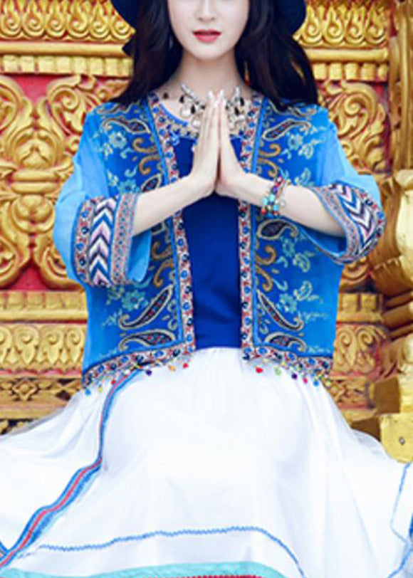 Bohemian Blue V Neck Print Tassel Cardigan Summer