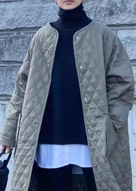 Boho Green Pockets Plaid Patchwork Thick Cotton Filled Long Parka Winter