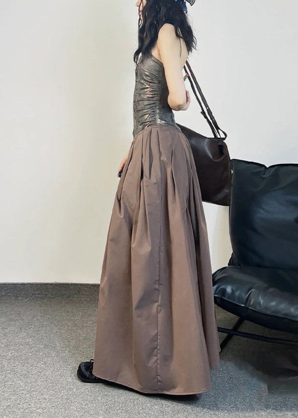 Boutique Brown Cotton Summer Spaghetti Strap Dress Sleeveless