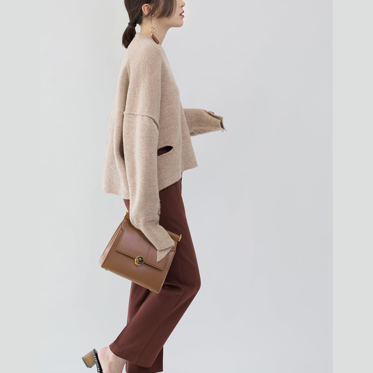 boutique khaki cozy sweater plus size V neck knitted tops top quality asymmetrical design top