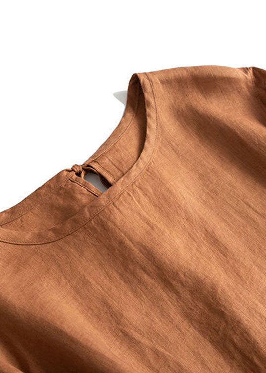 Casual Black tie Patchwork Linen Dresses Short Sleeve