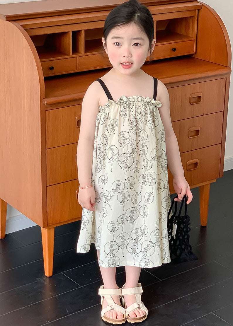 Chic Beige Print Ruffled Patchwork Cotton Slip Maxi Dress Sleeveless