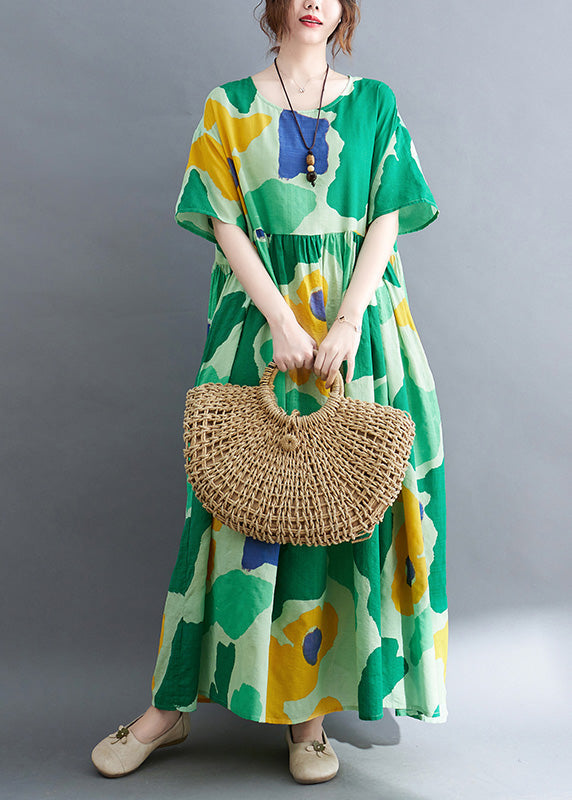 Chic Green Print Wrinkled Party Maxi Dress Summer