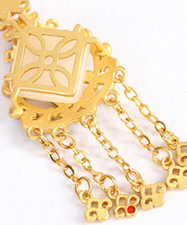 Chic Overgild Jade Cloisonne Peal Floral Drop Earrings
