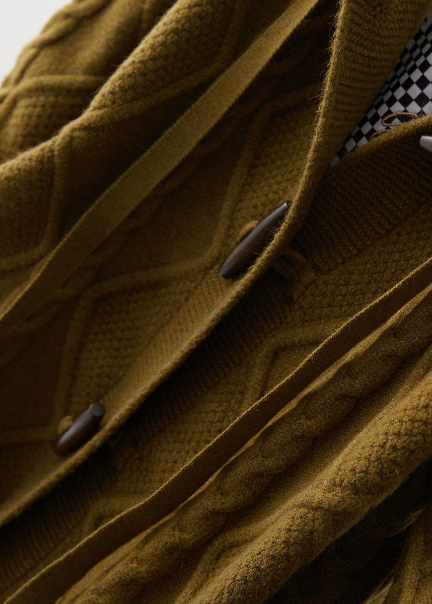 Classy Green Hooded Drawstring Thick Cable Knit Cardigans Winter