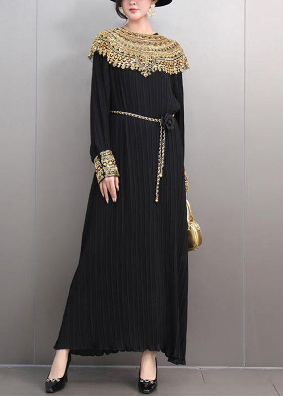 Classy Red O-Neck Sequins Sashes Holiday Maxi Dress Lantern Sleeve