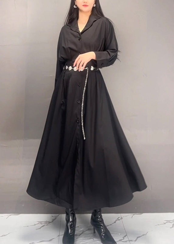 Classy White Notched Button Tunic Vacation Long Dresses Fall