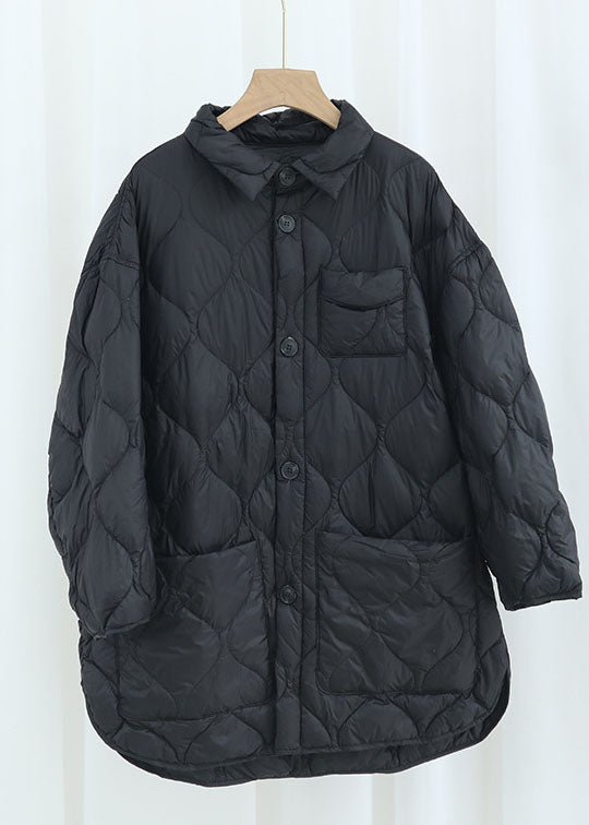 Elegant Khaki PeterPan Collar Pockets Button Winter Duck Down Coat