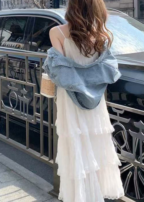 Elegant Purple V Neck Lace Cotton Spaghetti Strap Dress Sleeveless