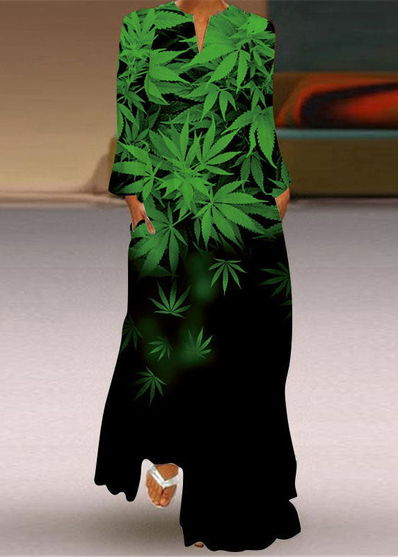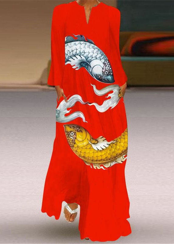 Fashion Blue V Neck Print Chiffon Ankle Dress Spring