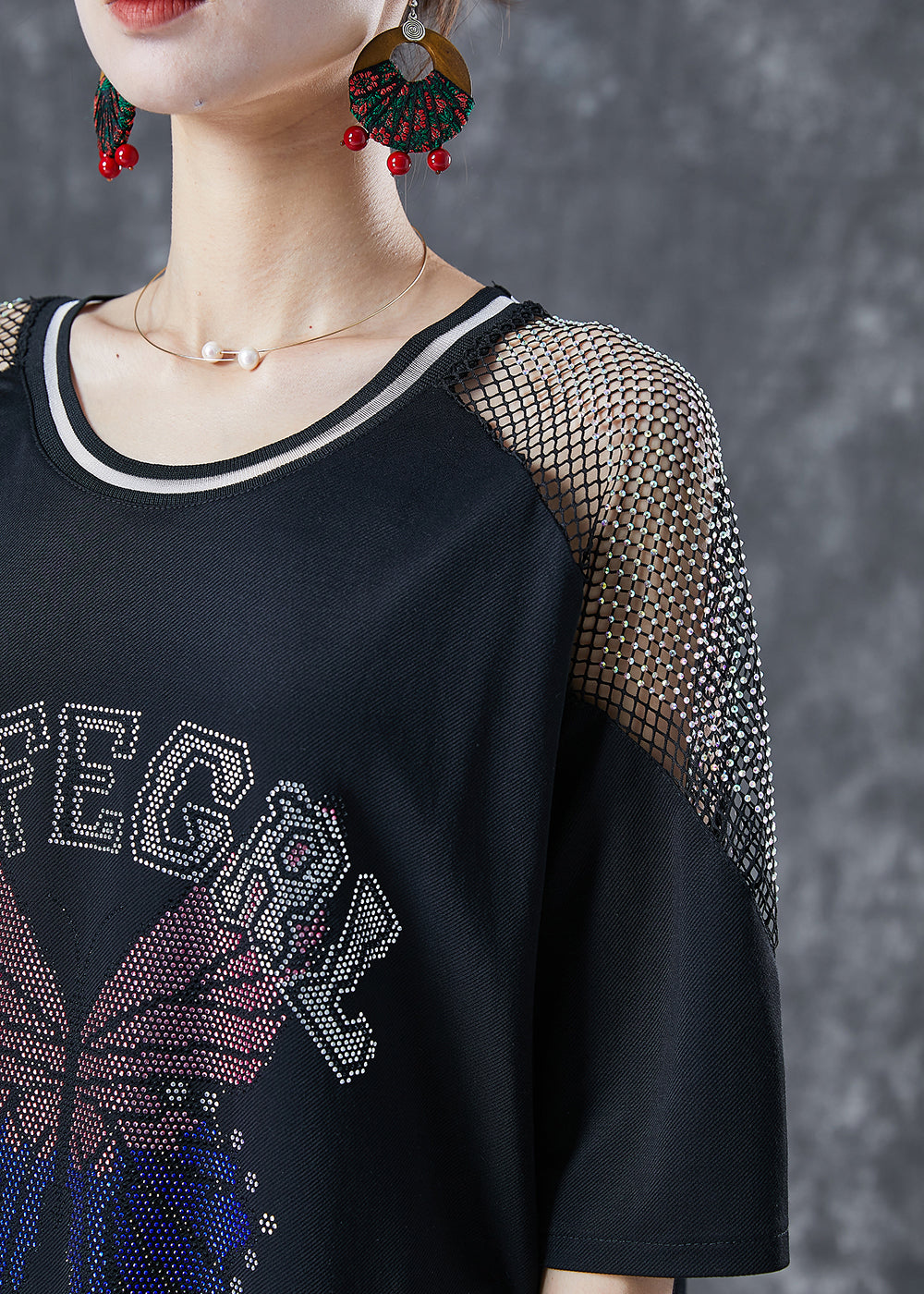 French Black Hollow Out Patchwork Zircon Butterfly Cotton Dresses Summer