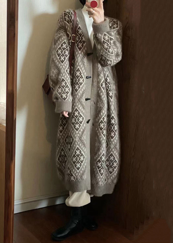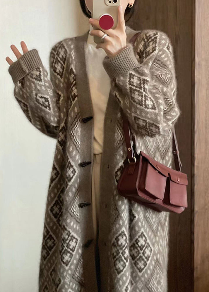 French Black V Neck Button Cotton Knit Long Cardigans Fall