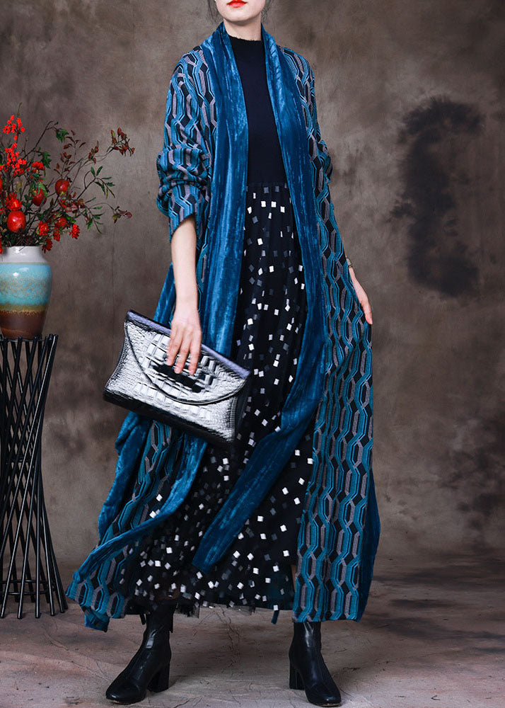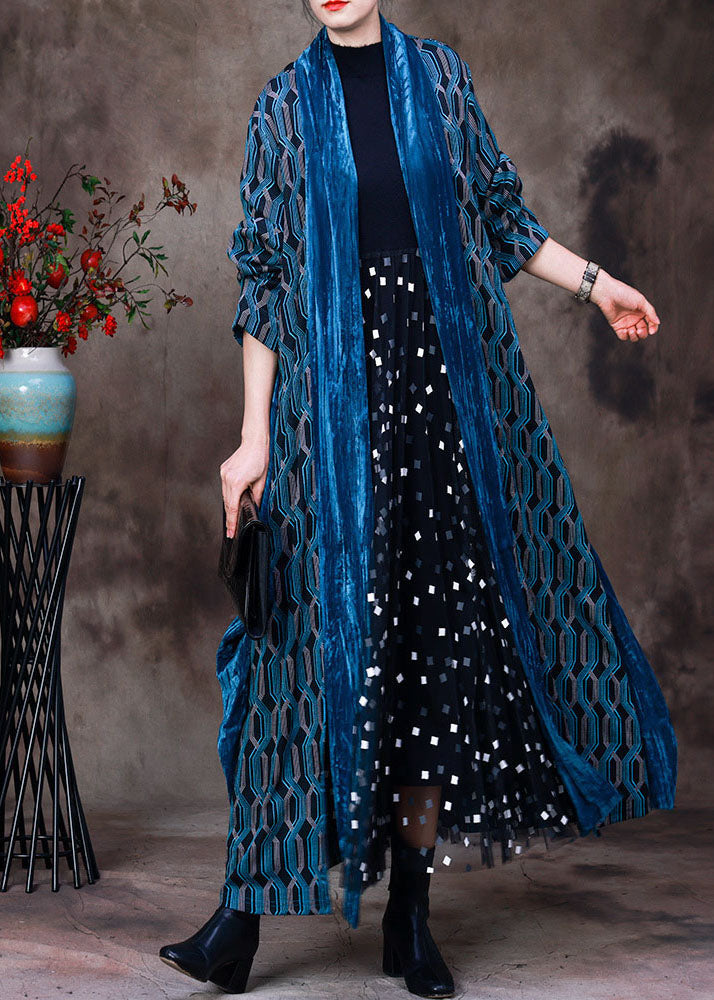 French Blue Plaid Patchwork Cotton Loose Cardigans Long Sleeve
