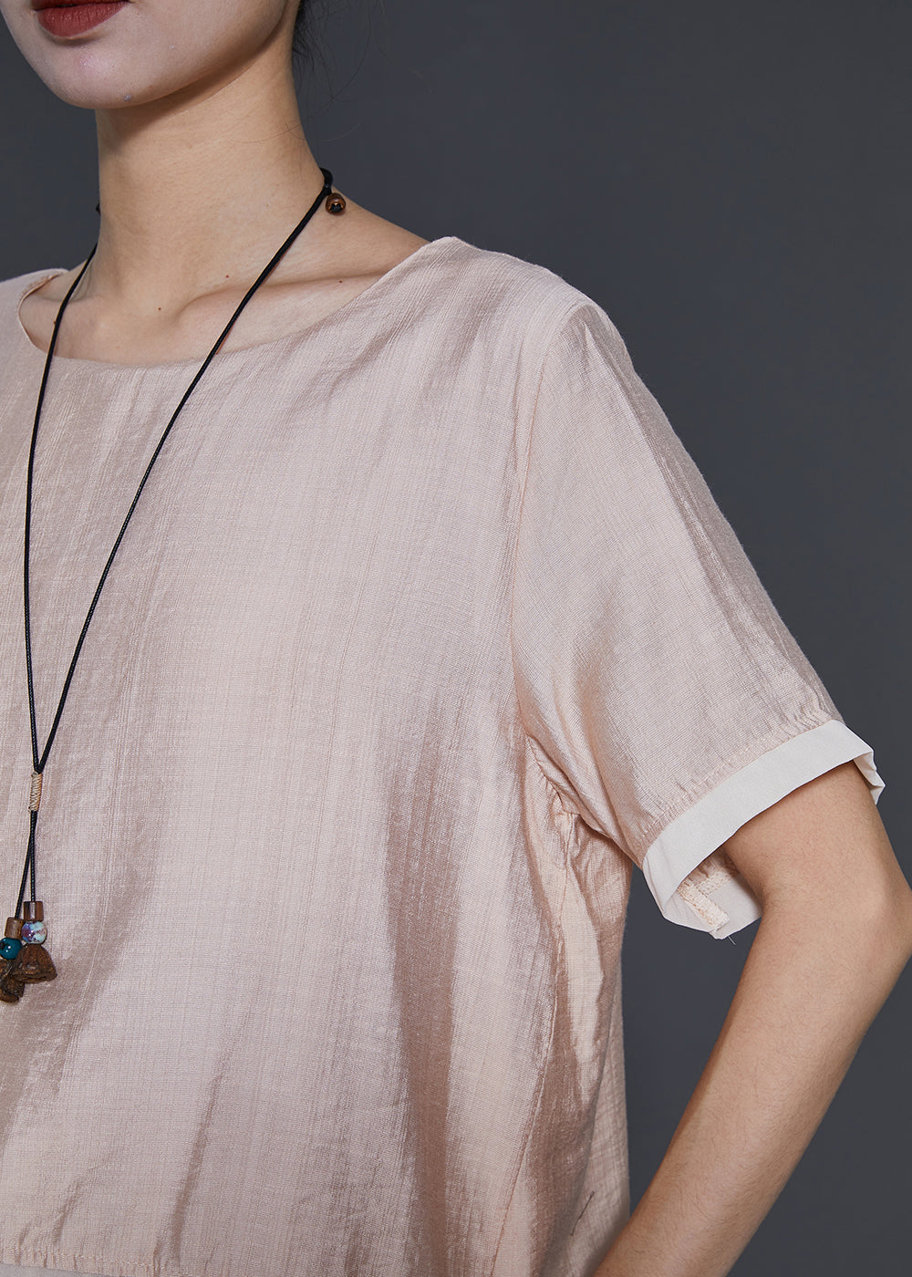 French Champagne Oversized Patchwork Linen Silk 2 Piece Outfit Summer