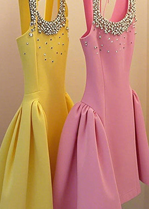 Handmade Yellow Nail Bead Lace Up Patchwork Mid Dress Sleeveless