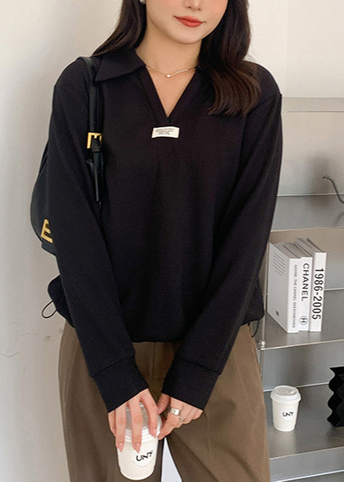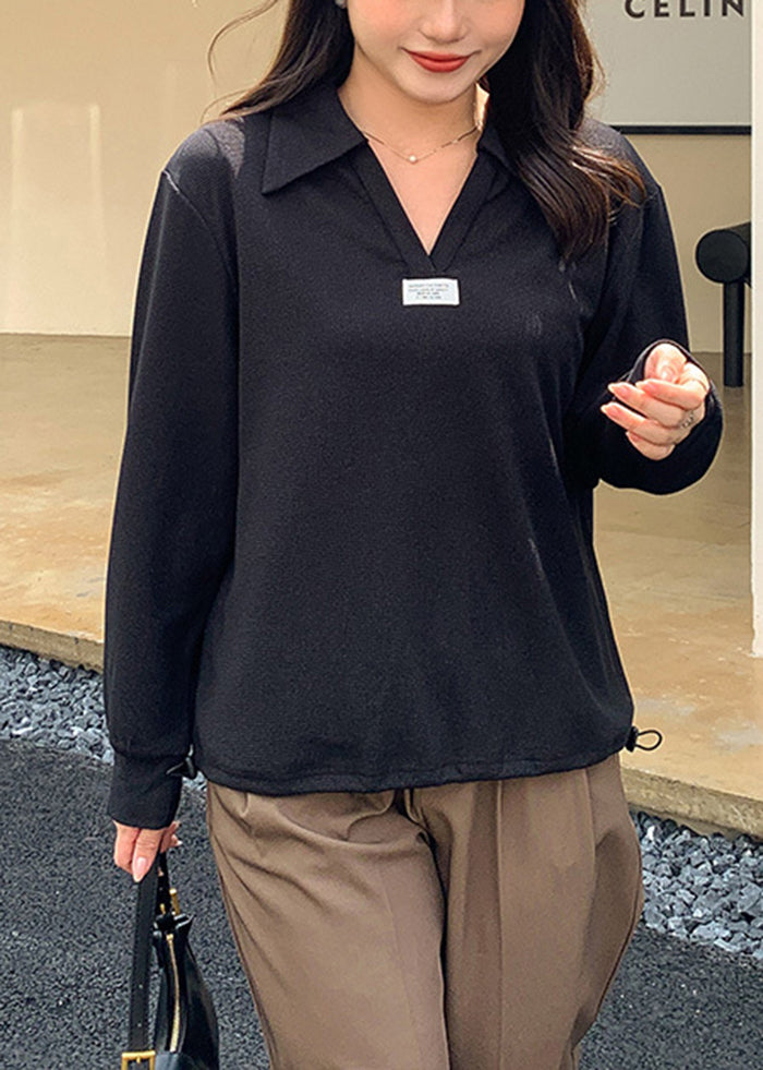 Italian Beige V Neck Drawstring Spandex Top Fall