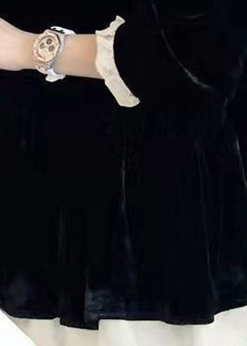 Italian Black Patchwork Velour Mini Dresses Spring