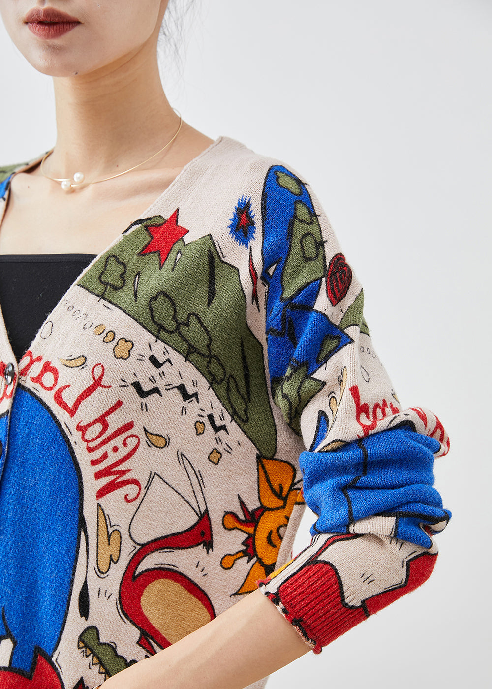 Italian Light Camel V Neck Animal Print Knit Cardigan Fall