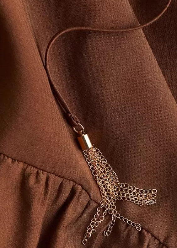 Loose Brown Ruffled Lace Up Cotton Long Dress Summer
