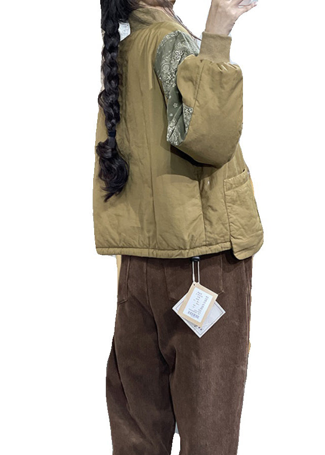 Loose Grey Half High Collar Print Fine Cotton Filled Pullover Lantern Sleeves