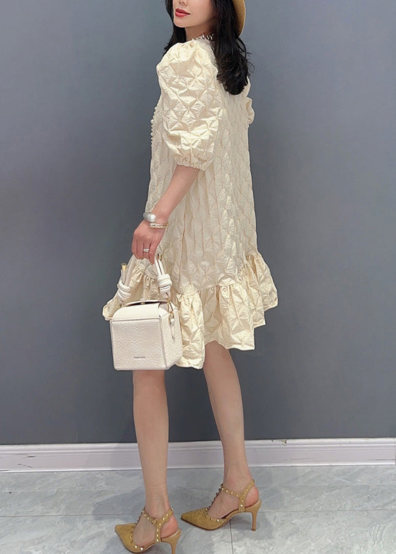 Modern Beige O-Neck Plaid Mid Dress Summer
