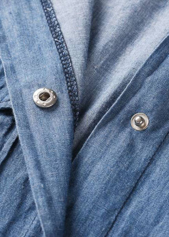 Modern Blue Peter Pan Collar Patchwork Denim Shirts Dress Summer