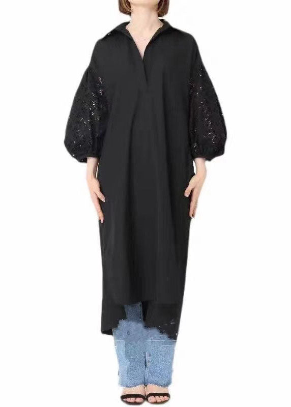 Natural White Lace Patchwork Cotton Shirts Dress Half Sleeve