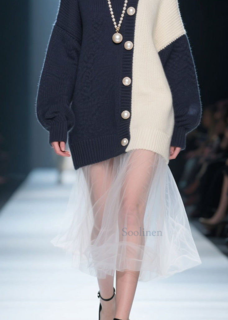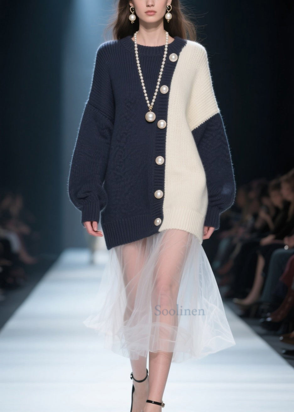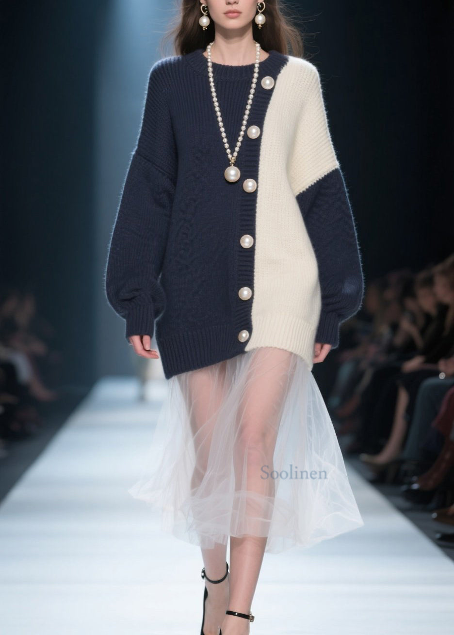 Organic Colorblock O Neck Patchwork Knit Pullover Winter