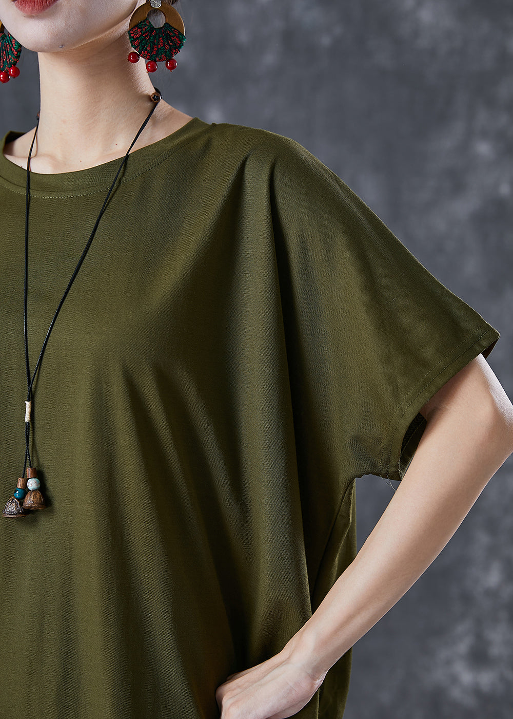 Plus Size Army Green Asymmetrical Print Cotton Two Pieces Set Summer