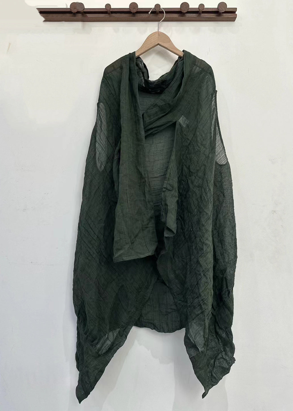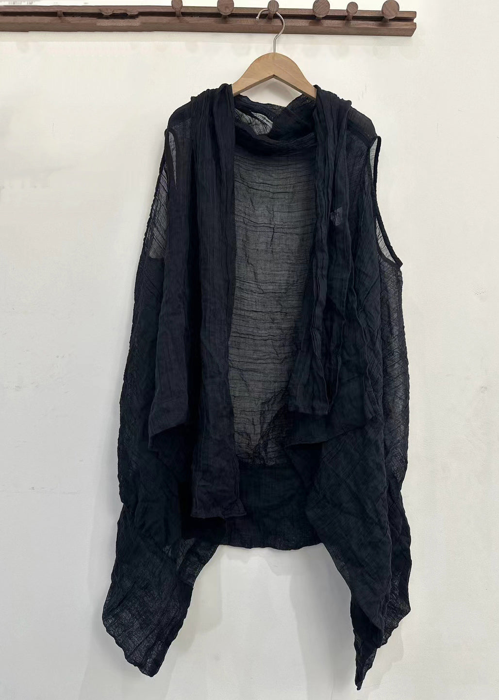 Simple Red Asymmetrical Solid Linen Cardigan Sleeveless