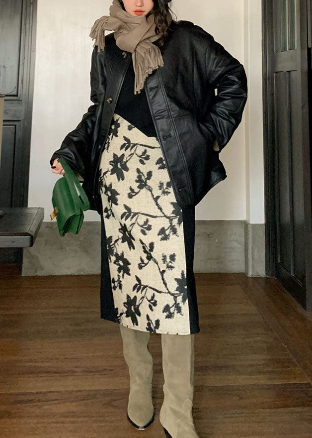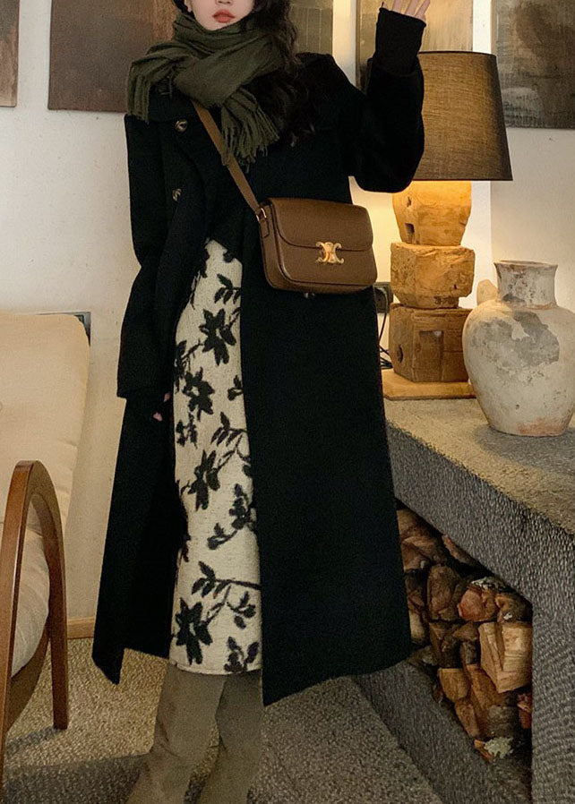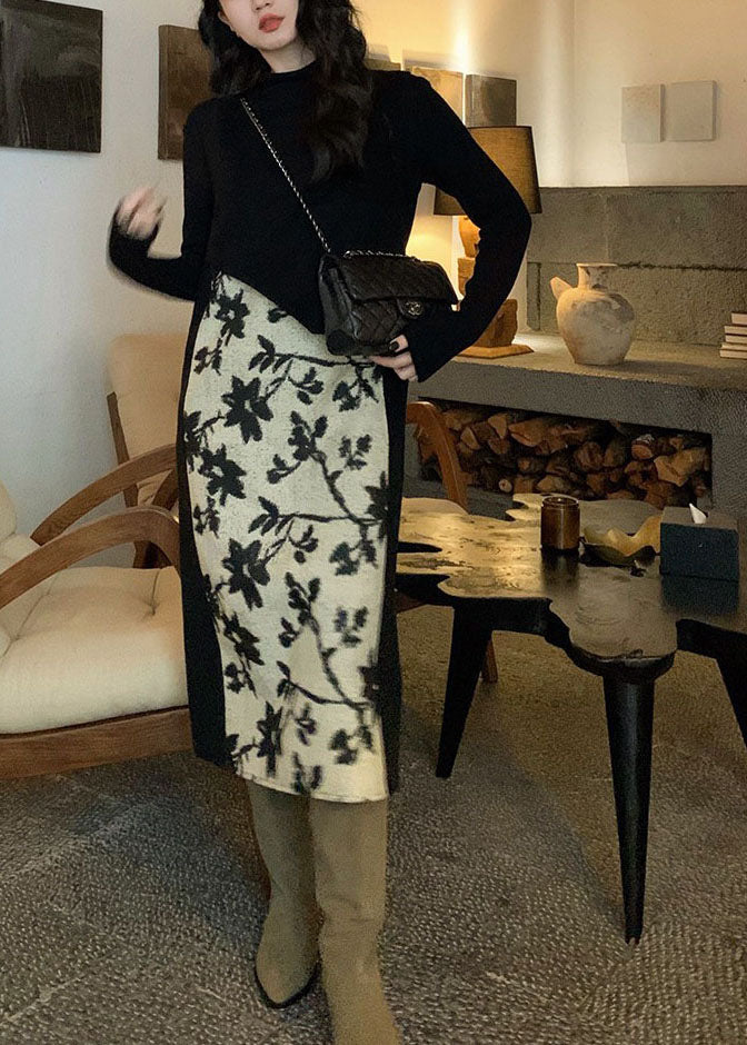 Slim Fit Black Woolen Patchwork Jacquard Long Dress Sleeveless