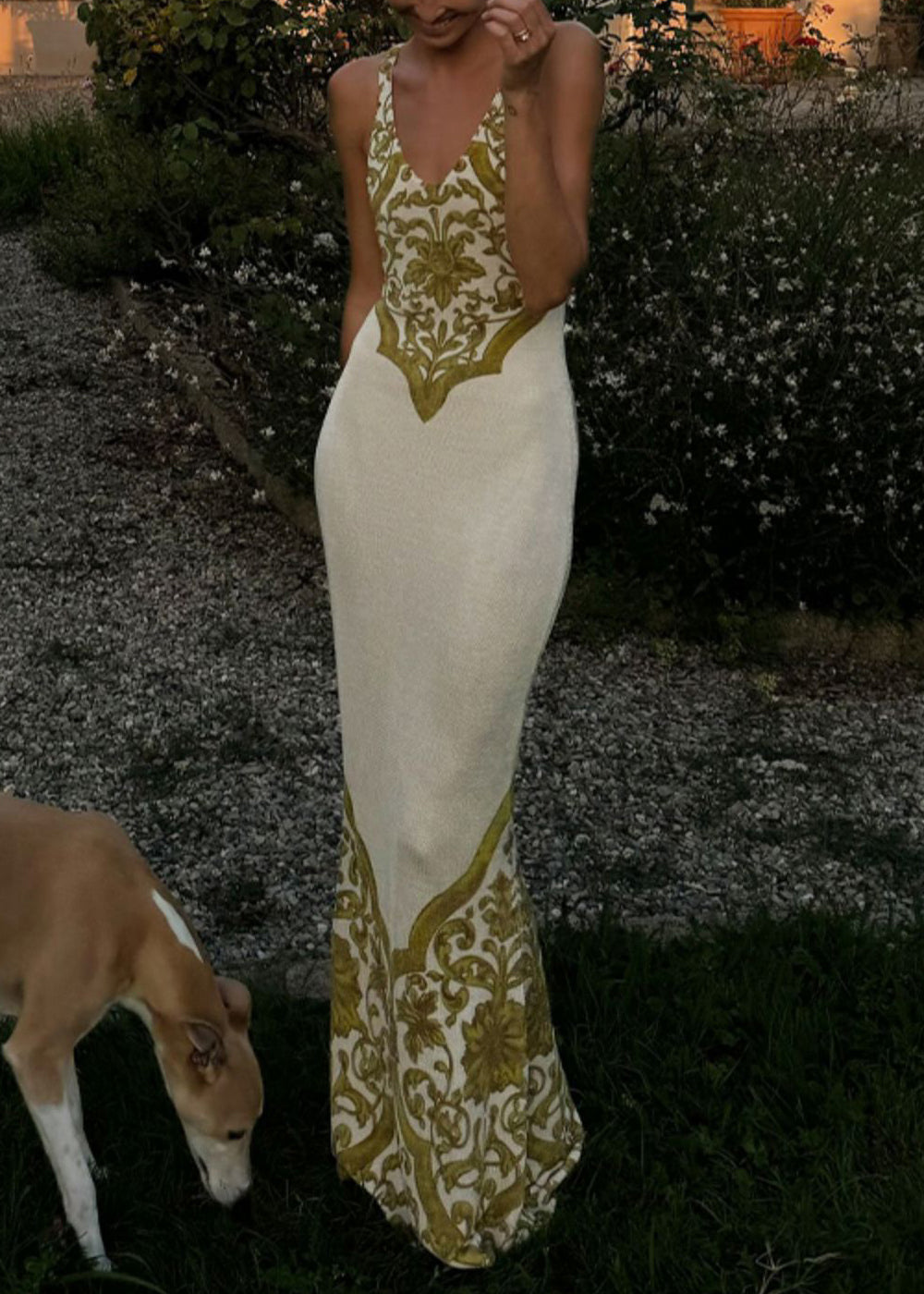 Slim Fit Green V Neck Print Cotton Maxi Dresses Sleeveless