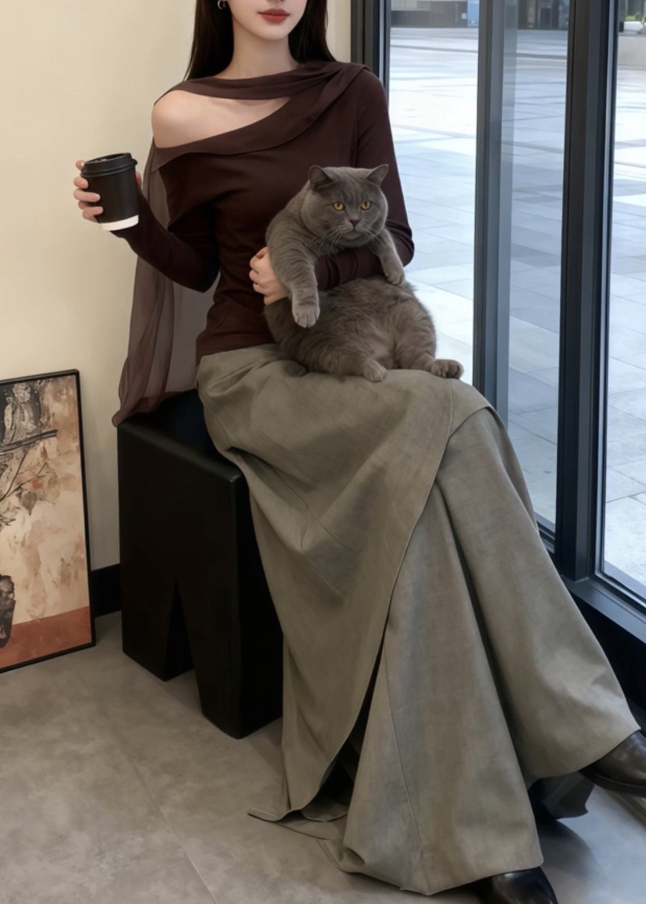 Stylish Cold Shoulder Asymmetrical Design Two Pieces Set Spring