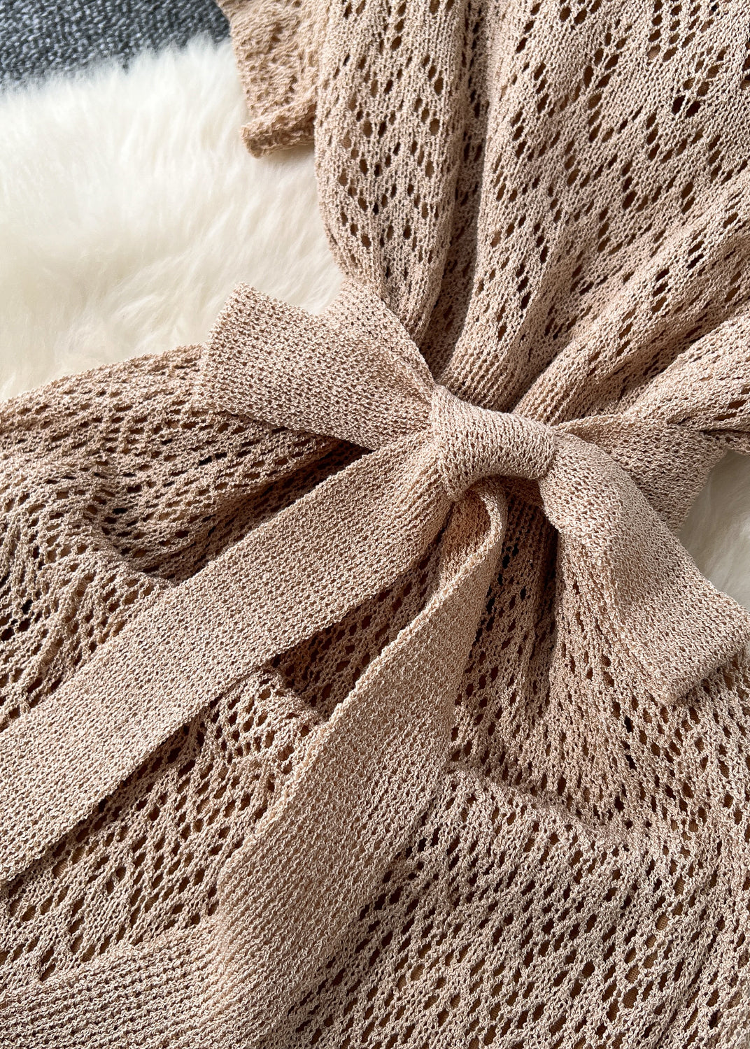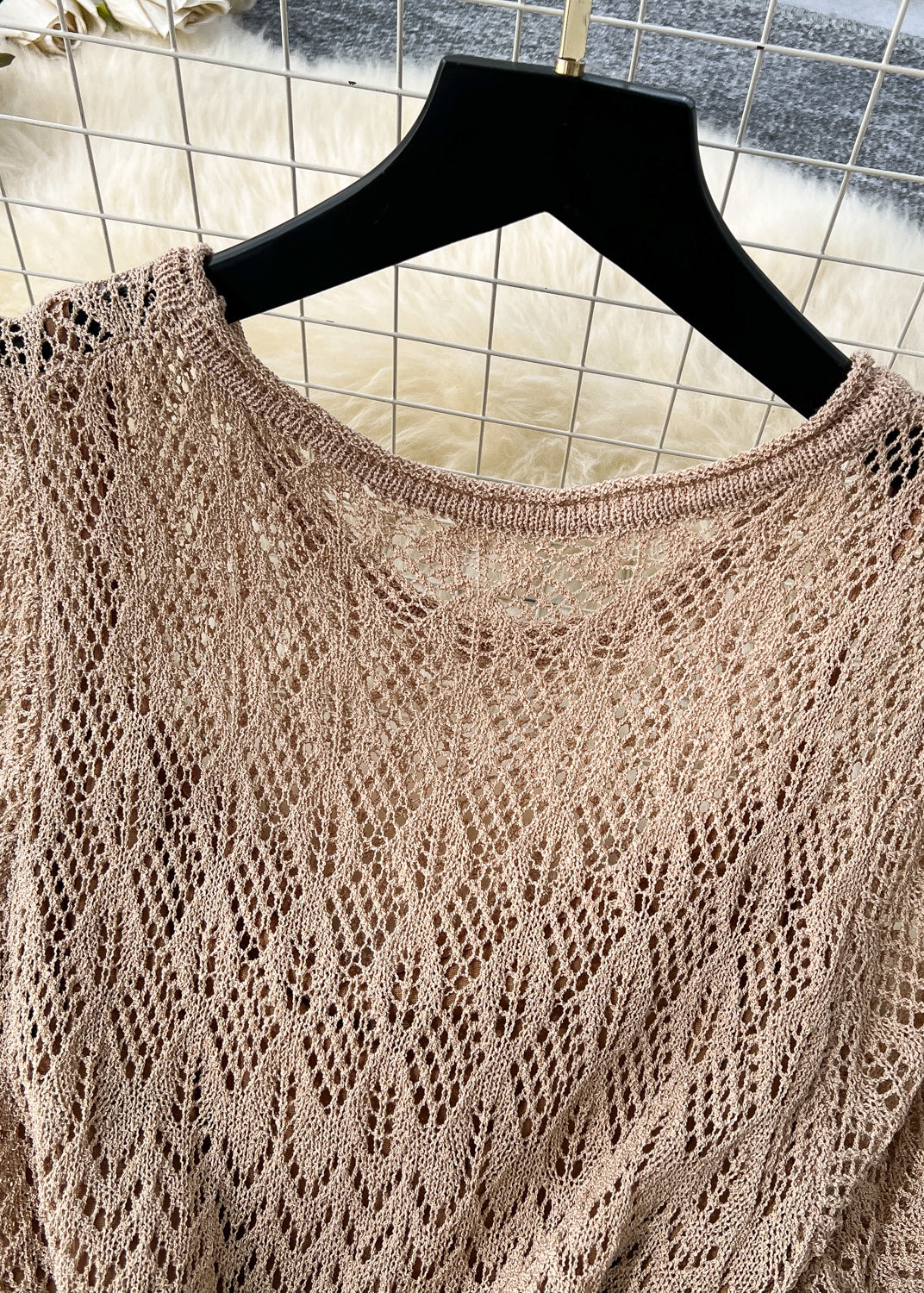 Unique Sky Blue Hollow Out Knit Vacation Dresses Two Piece Set Summer