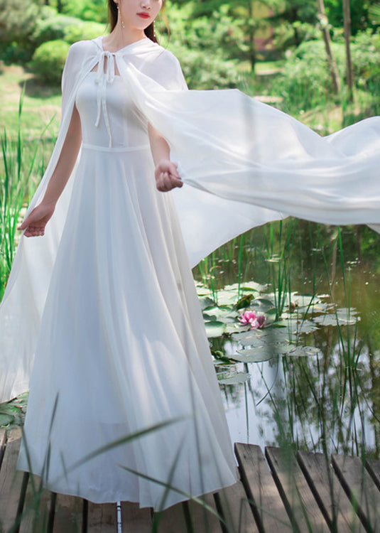 Vintage Blue Neck Tie Chiffon Cloak And Slip Dress Two Piece Set Spring