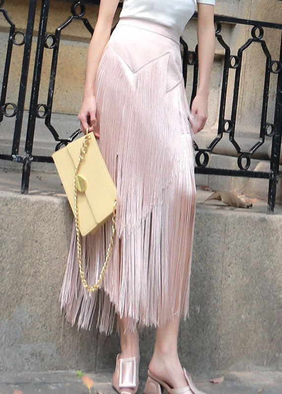 Vintage Pink Zip Up Tassel Patchwork Skirt Spring