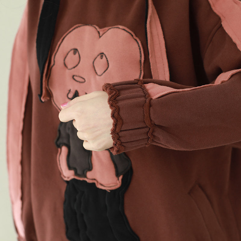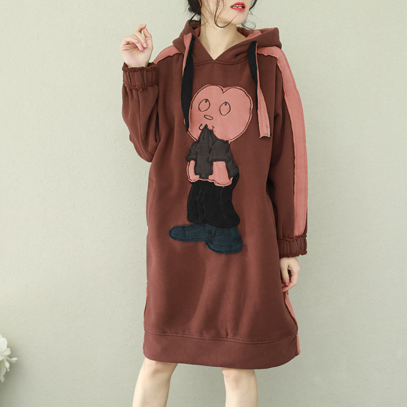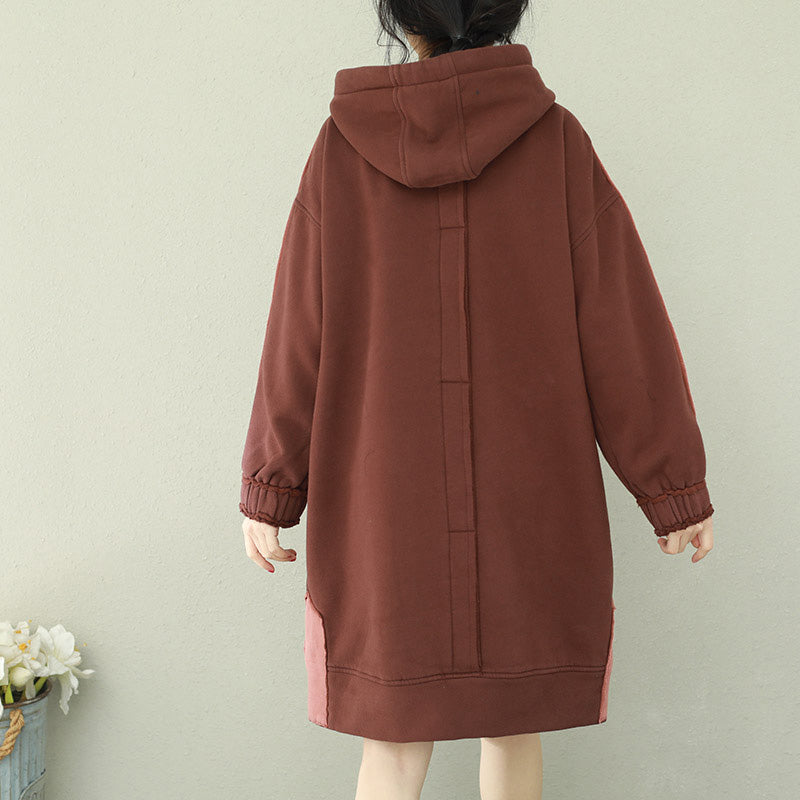 Women brown Cotton Wardrobes Vintage Photography hooded thick short Dress