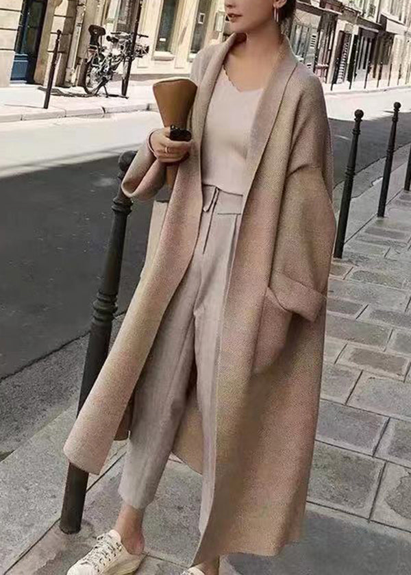 Women Light Camel Peter Pan Collar Pockets Knit Cardigan Fall