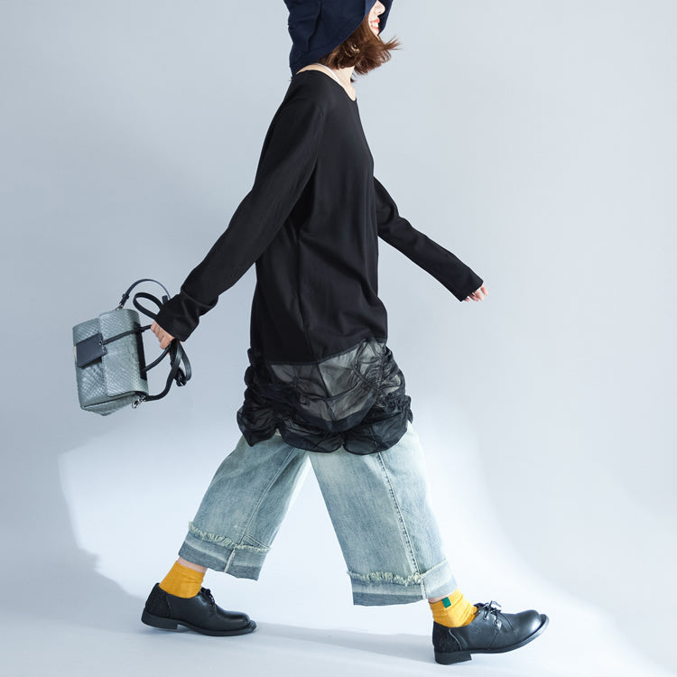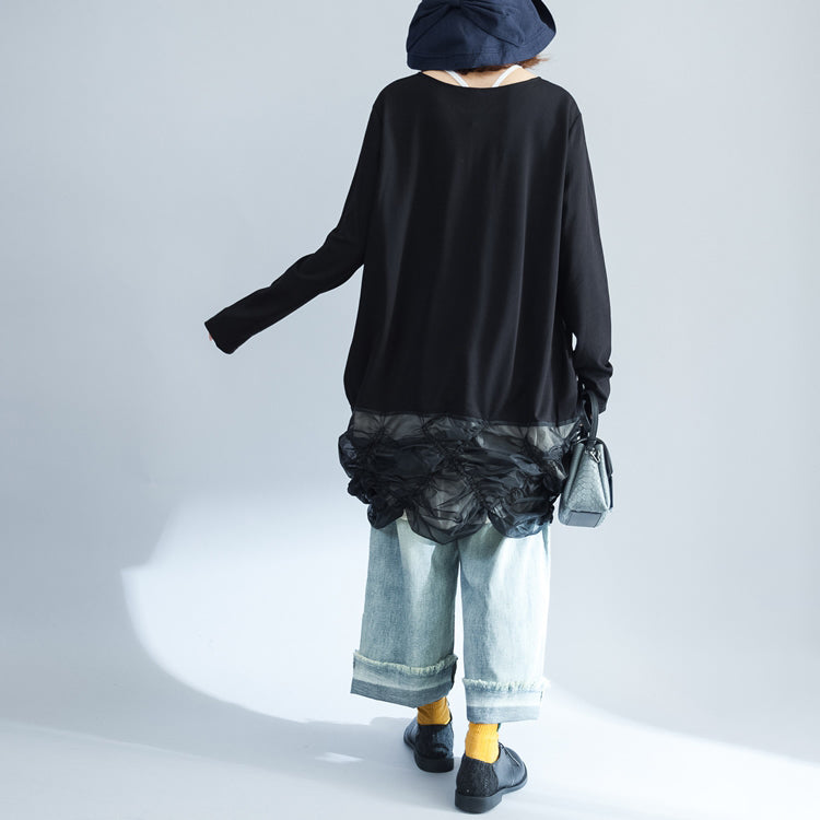 2025 unique black cotton patchwork knit tops plus size casual long sleeve sweaters