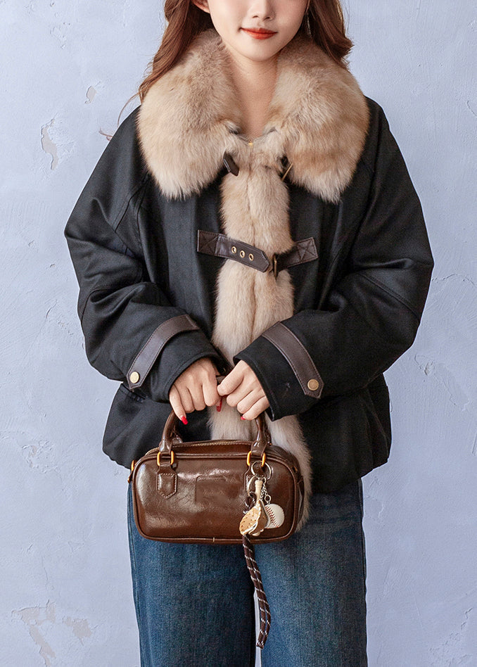 2025 New Chocolate Peter Pan Collar Pockets Fine Cotton Filled Jackets Winter