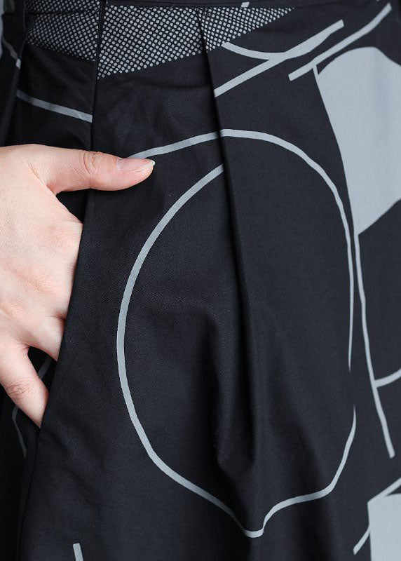 Art Black Asymmetrical Print Patchwork Bow Cotton Skirt Spring