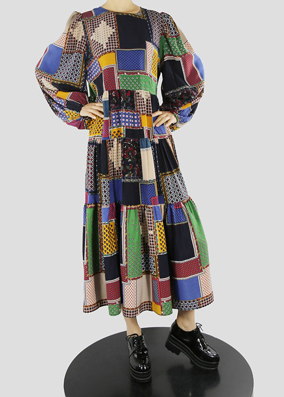 Beautiful Black O-Neck Sashes print Holiday Dress Spring