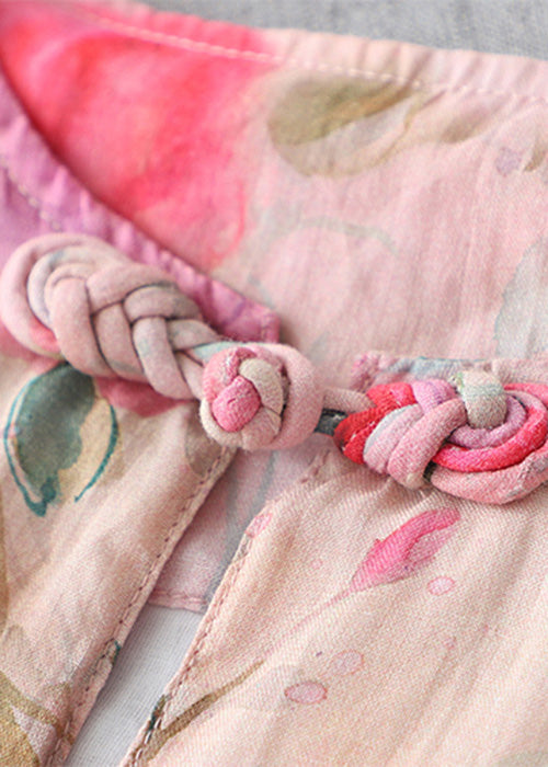 Beautiful Print O-Neck Button Cotton Mid Dress Half Sleeve
