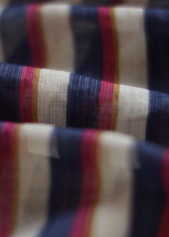 Bohemian Striped O-Neck Asymmetrical Design Print Fall Top