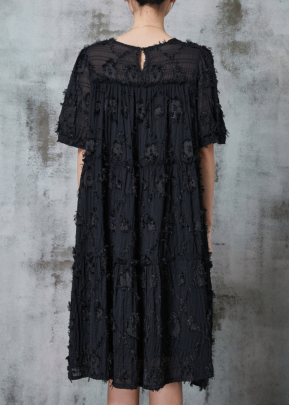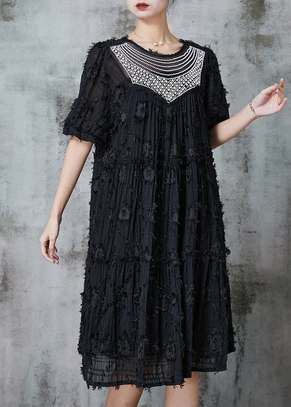 Boutique Black Tasseled Zircon Cotton Dresses Summer