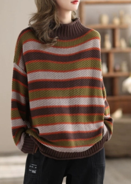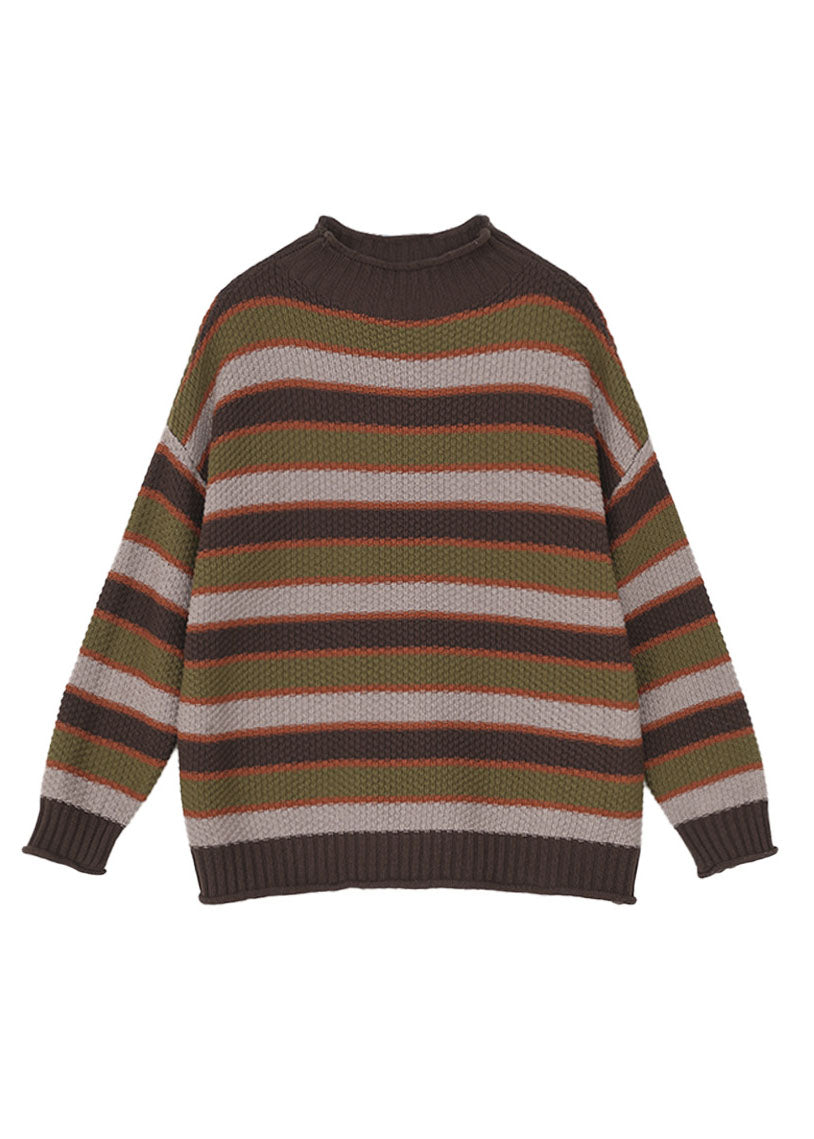 Boutique Blue Half Hign Neck Striped Cotton Knit Sweater Spring