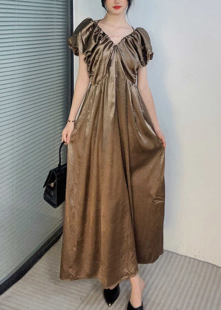 Classy Black V Neck Cinched Patchwork Silk Maxi Dresses Summer