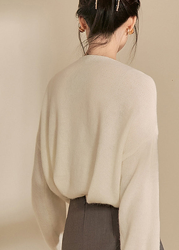 DIY Beige V Neck Lace Patchwork Cozy Cotton Knit Sweaters Winter
